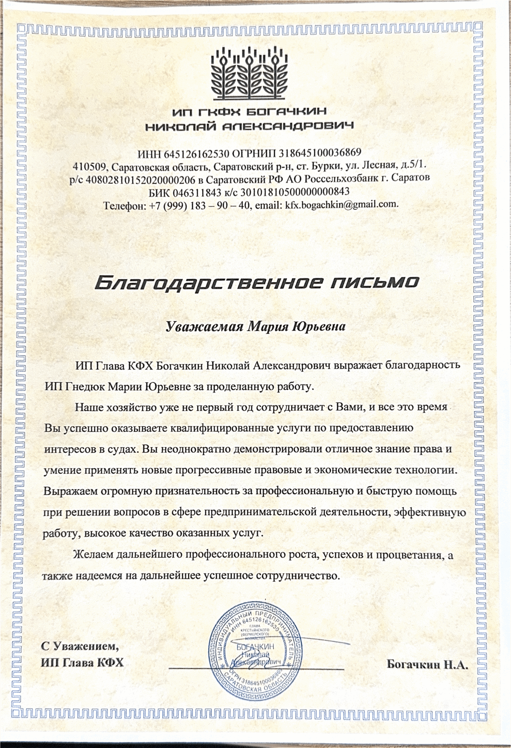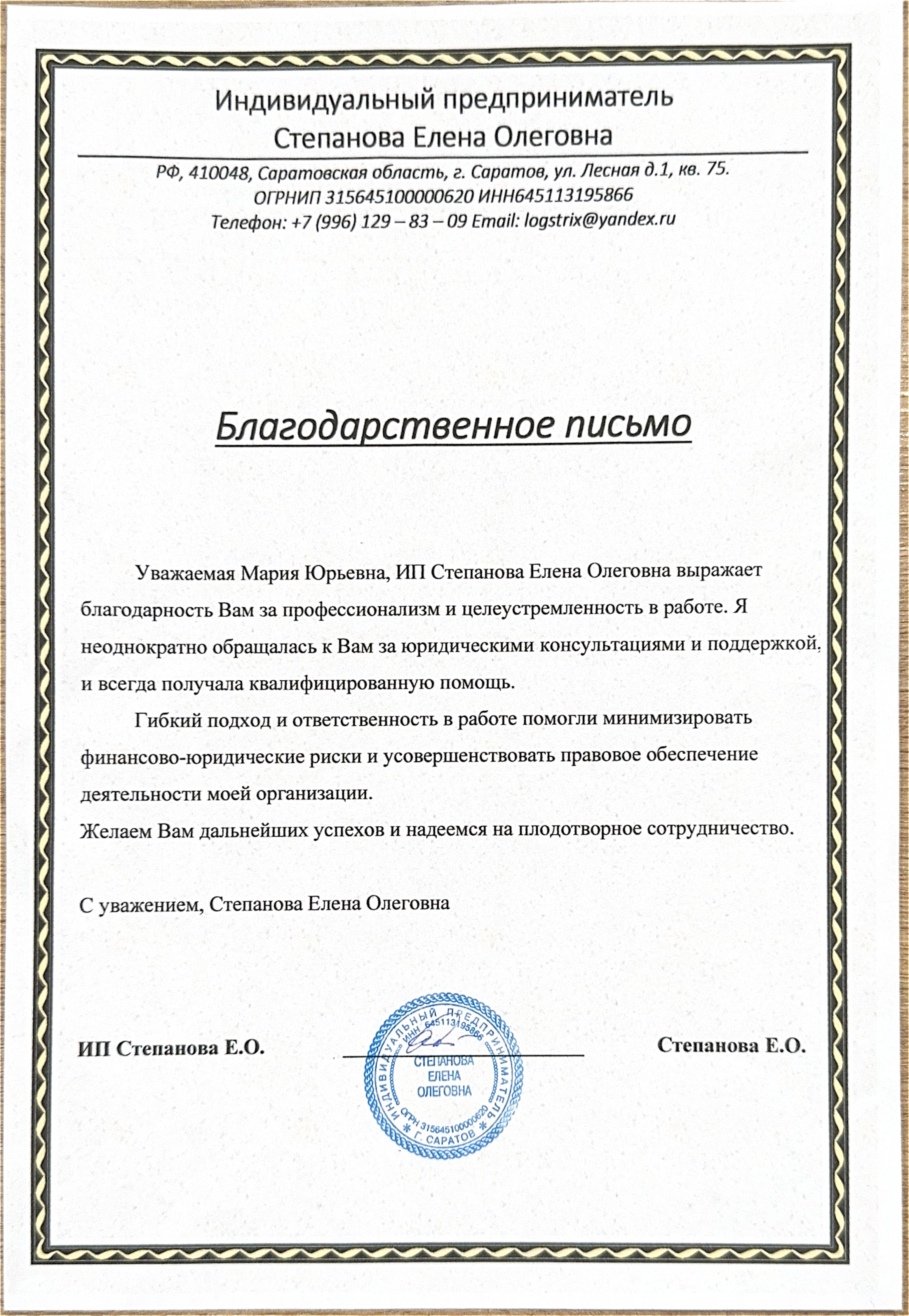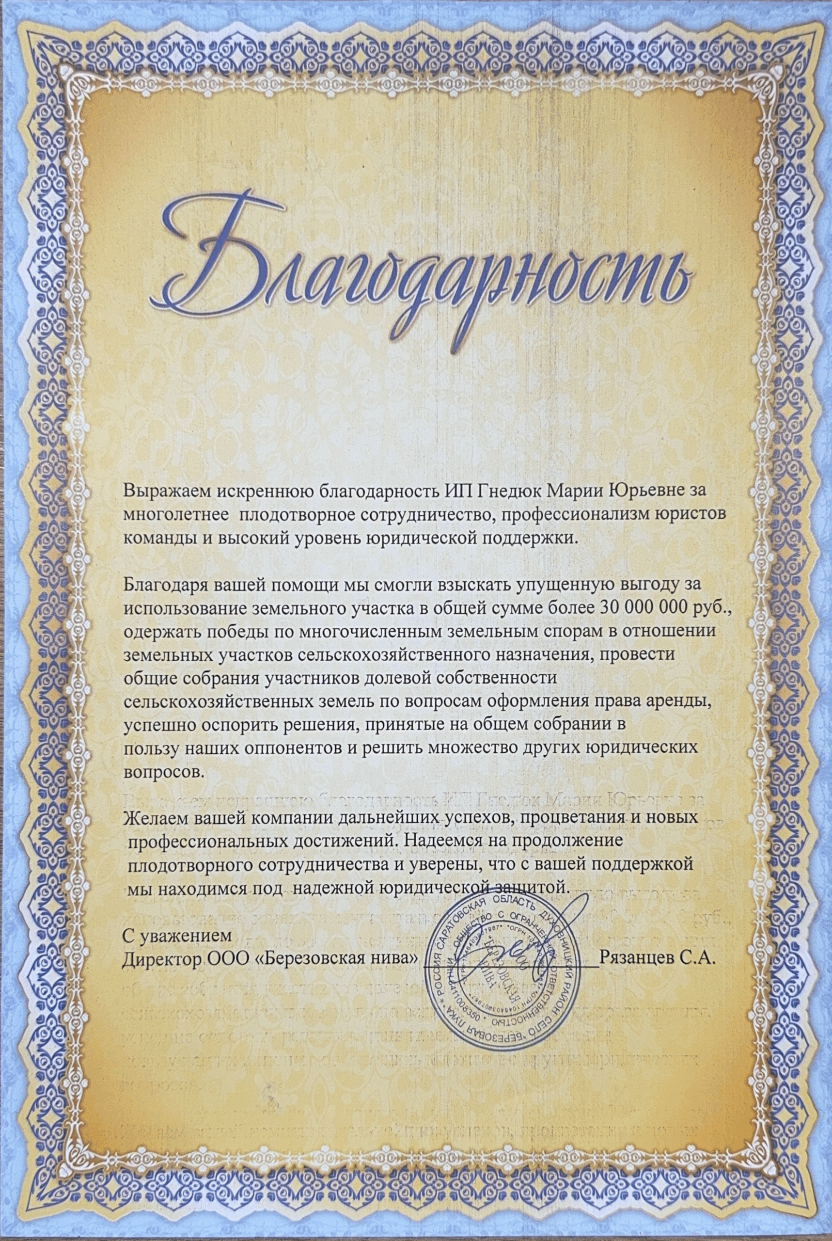 клиенту, Юридическая компания Марии Гнедюк зарекомендовала